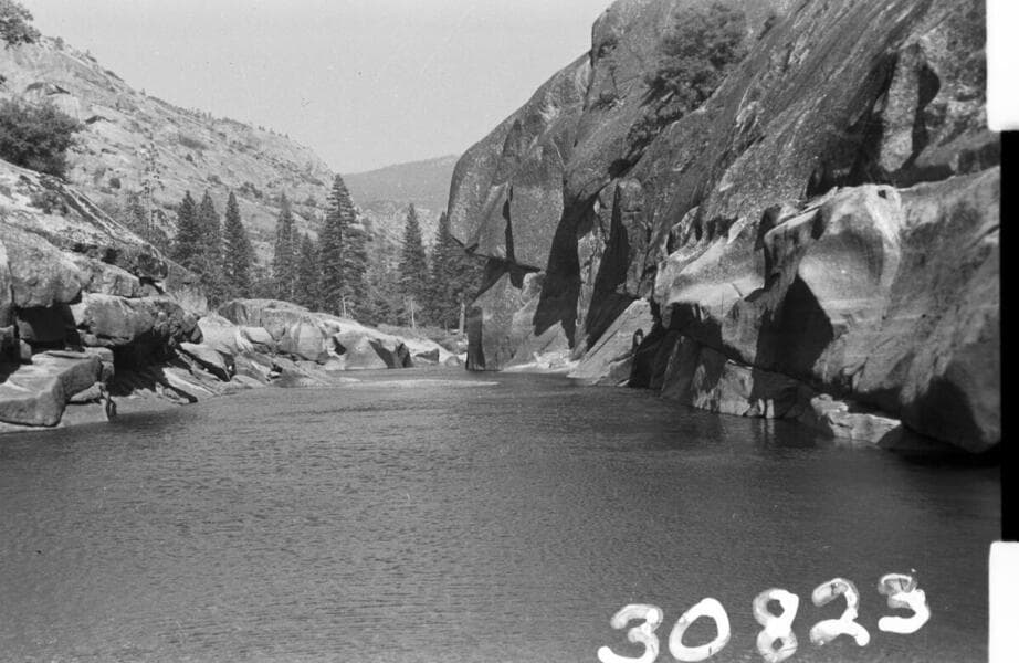 Big Creek, West Side Project - Forks damsite #3 looking down river .