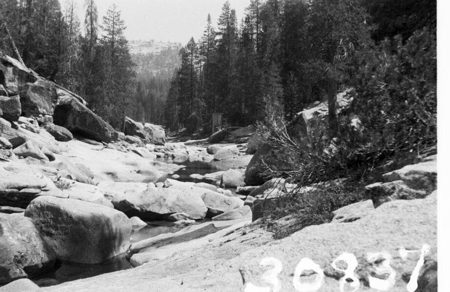 Big Creek, West Side Project - Granite Creek looking down on gauging station.