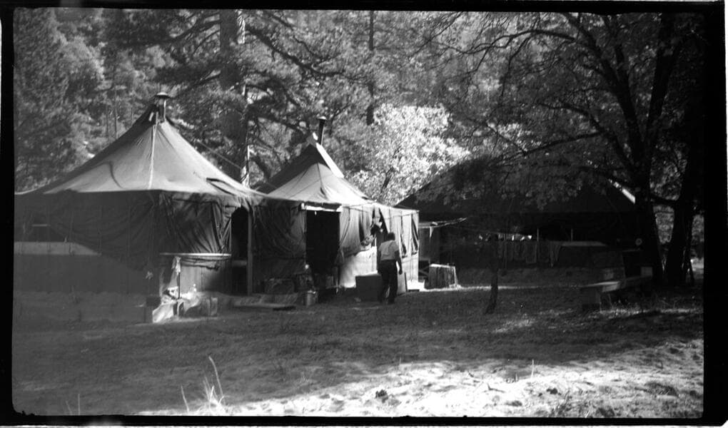 Big Creek, Mammoth Pool - Drill camp at Mammoth Pool damsite before cleanup.