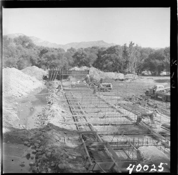 Borel Powerhouse - Kern River Borel 3rd stage - Progress picture during construction of overflow dam.
