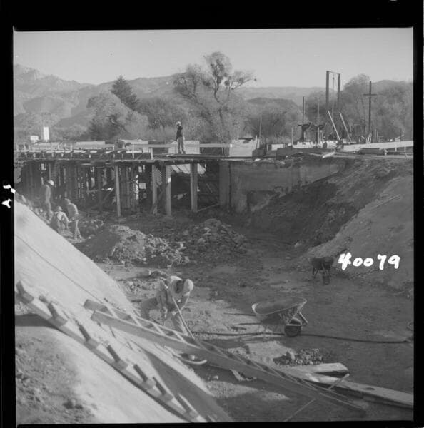 Borel Powerhouse - Kern River Borel 3rd stage - Progress picture showing construction of structures at canal intake prior to canal outage.