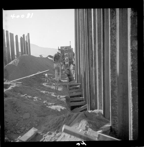 Borel Powerhouse - Borel 3rd Stage - Placing of sheet piling prior to excavation for foundations for canal control gates.