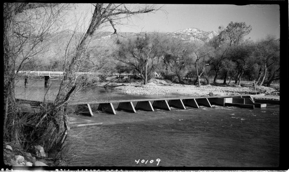 Borel Powerhouse - Modifications to Borel Canal showing view of spill over river diversion weir in Kernville.