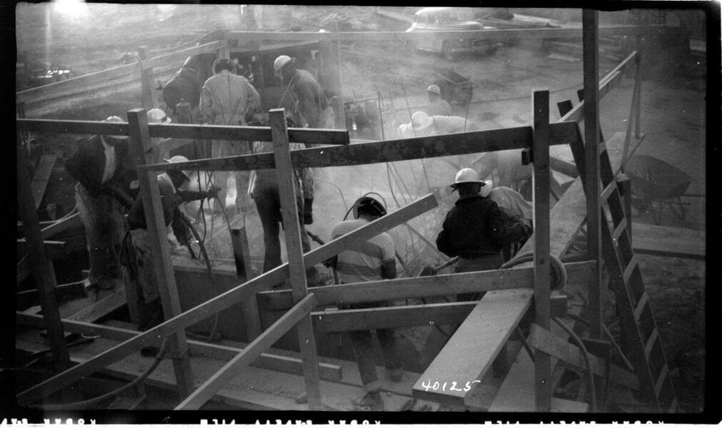 Long Beach Steam Station - Discharge Conduit - Cutting down #11 gate wells for construction of above gound cooling water system.