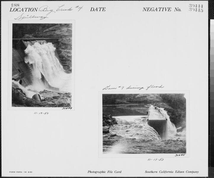 Big Creek Powerhouse #4 - North abutment of Dam 7 after flood, showing lack of toe erosion.