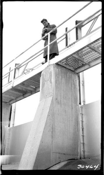 Big Creek, Huntington Lake Dams - Dam 1 - Spillway showing Parker type of pattern cracking in 1937.