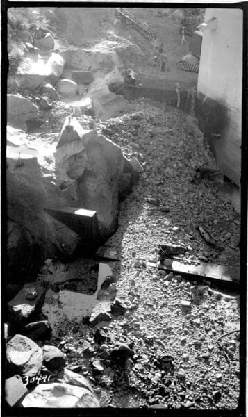 Big Creek Powerhouse #8 - Cleaning up debris after break in pressure pipel.