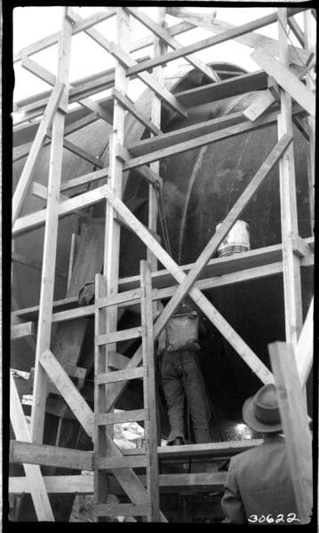 Big Creek Powerhouse #4 - Preheating and welding penstock joint.