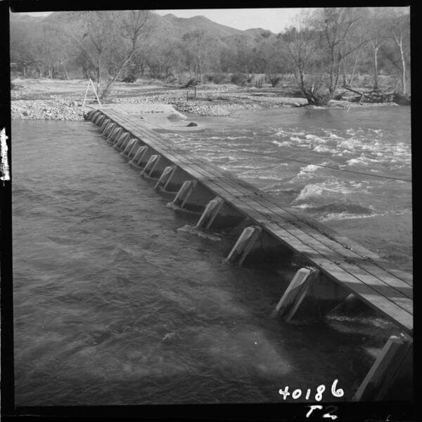 Borel Powerhouse - Modifications to Borel Canal showing view of spill over river diversion weir in Kernville.