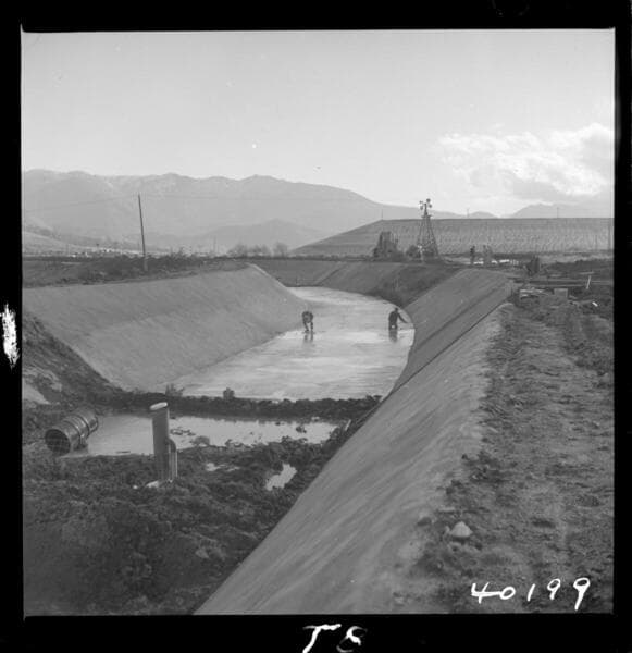Borel Powerhouse - Borel Canal - Picture taken on 2/12/1951, first days placement of 3" concrete floor slab near Borel Headworks by Johnson-Western.