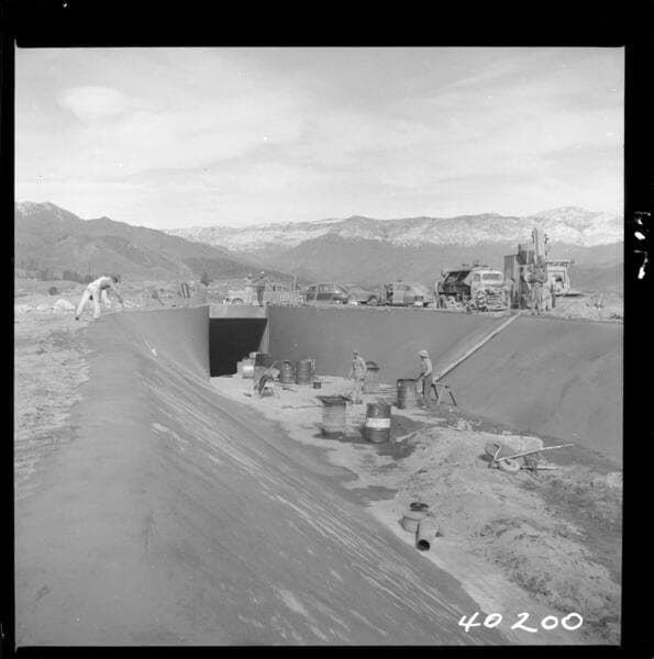 Borel Powerhouse - Borel - Guniting sidewalls of outlet transition.