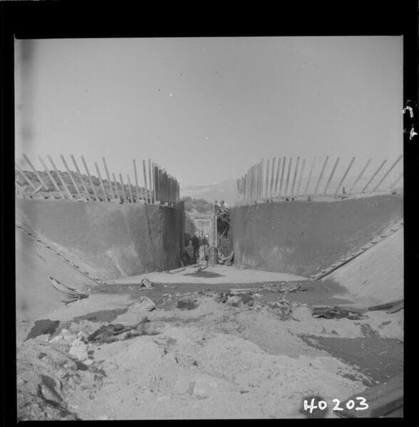 Borel Powerhouse - Borel - Guniting sidewalls of open transition at outlet of siphon.