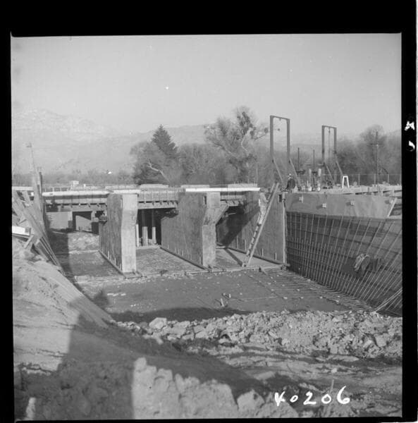 Borel Powerhouse - Modifications to Borel Canal showing construction of concrete structure around control gate.