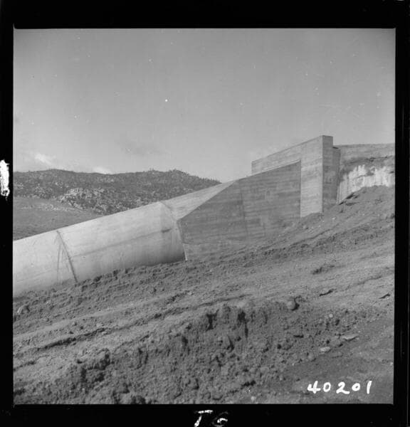 Borel Powerhouse - View of upstream end of closed section of Borel conduit through Auxiliary Dam.