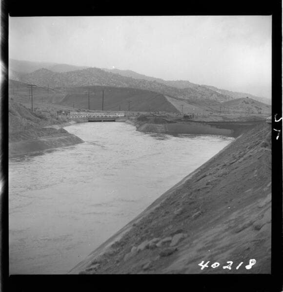 Borel Powerhouse - Borel - View showing flow conditions at lower end of Tilley #3 on day canal was returned to service (flow 400 cfs).