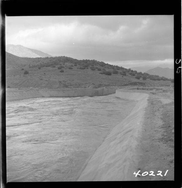 Borel Powerhouse - Borel - View showing flow conditions at lower end of Tilley #3 on day canal was returned to service (flow 400 cfs).