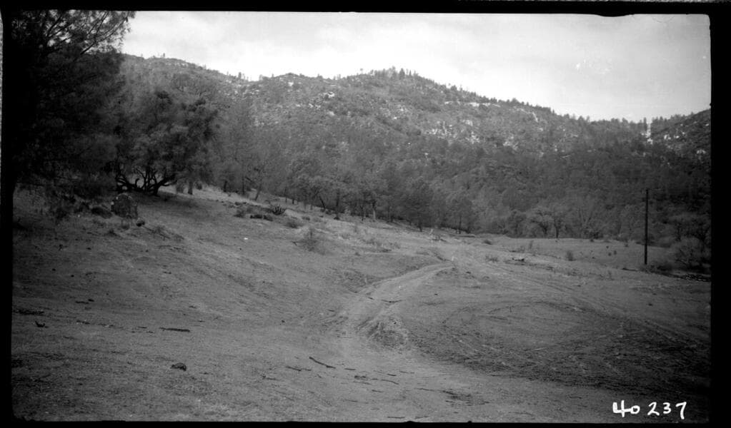 Big Creek Powerhouse #3 - View of original ground, housing site. Camera at P.O.T. #2 looking toward ridge between house sites 1 to 4 & house site 12.