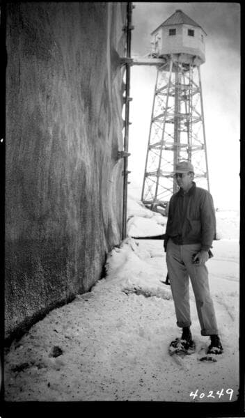 Big Creek, Huntington Lake Dams - Dam #2 - Upstream face near Shaver intake rack. T. M. Leps