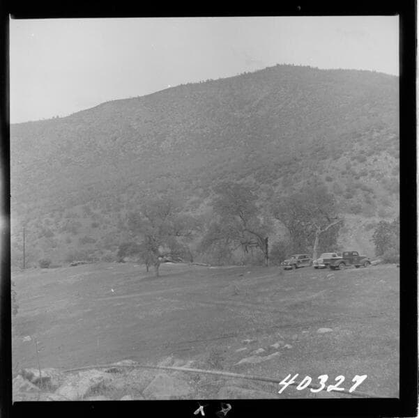 Big Creek Powerhouse #3 - View of original grant housing site. Camera near station 403 between house sites 26 & 27, looking toward sites 14 & 15.