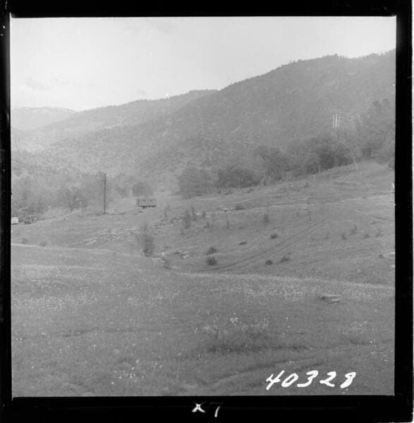 Big Creek Powerhouse #3 - View of original grant housing site. Camera near station 403 between house sites 26 & 27, looking toward sites 14 & 15.