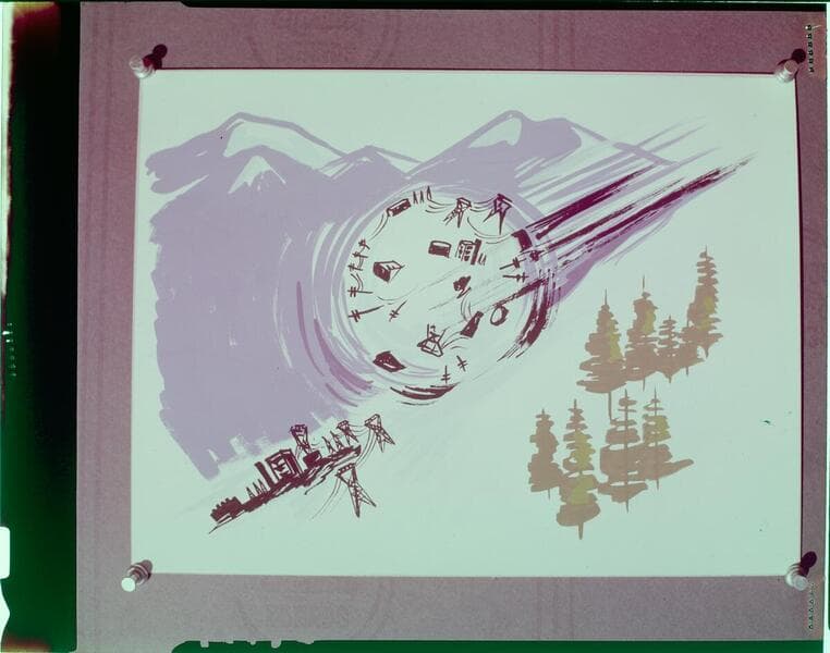 Political cartoon - government competition with investor owned utilities. (color trans.)
