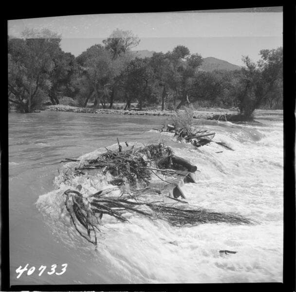 Borel Powerhouse - Modifications to Borel Canal showing view of spill over river diversion weir in Kernville.