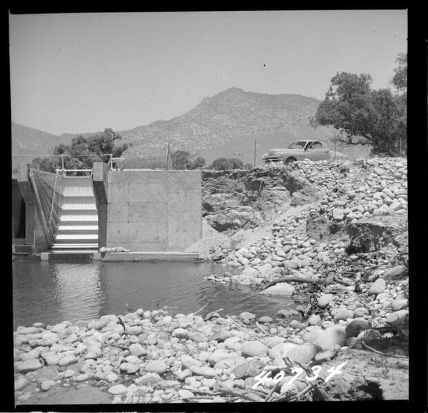 Borel Powerhouse - Isabella Main Dam - placing rip-rap along upstream face.