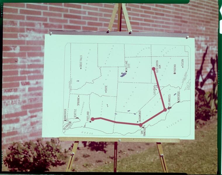 Transmission corridors mapped from Bonneville and Glen Canyon Dams to Los Angeles