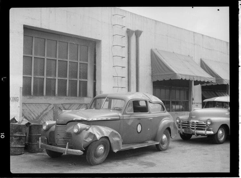Vehicle No. 204 - Chevrolet two-door sedan- with wrecked front end.