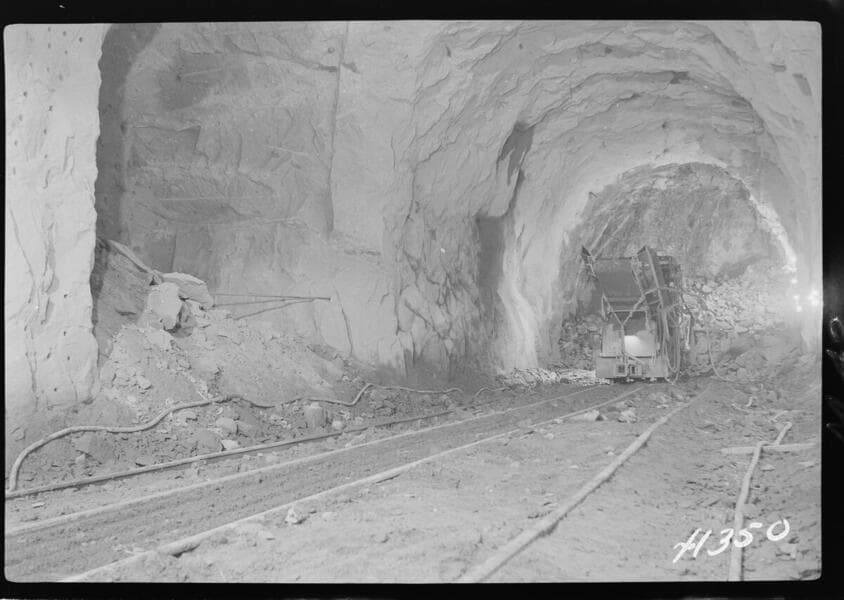 Big Creek Powerhouse #4 - Heading at surge chamber adit (left) Tunnel #2.