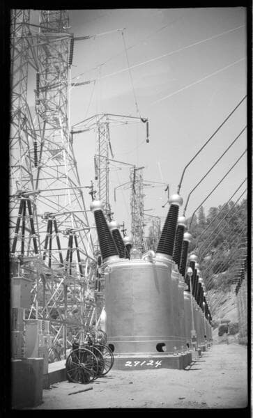 Big Creek Powerhouse #4 - 220 kV Oil Circuit Breakers and Disconnect Switches in Switchyard.