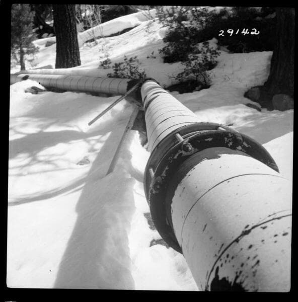 Big Creek, Florence Lake Dam - View of 14" pipe on the Tombstone Creek diversion pipeline.
