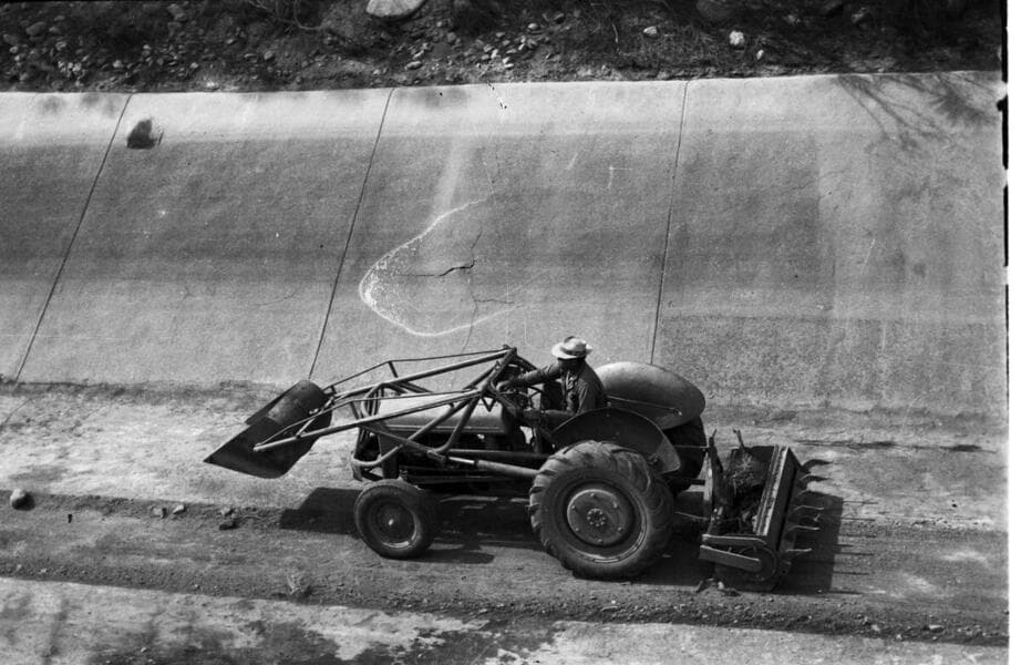 Borel Powerhouse - Borel Canal - Removing debris from canal preparatory to sweeping.