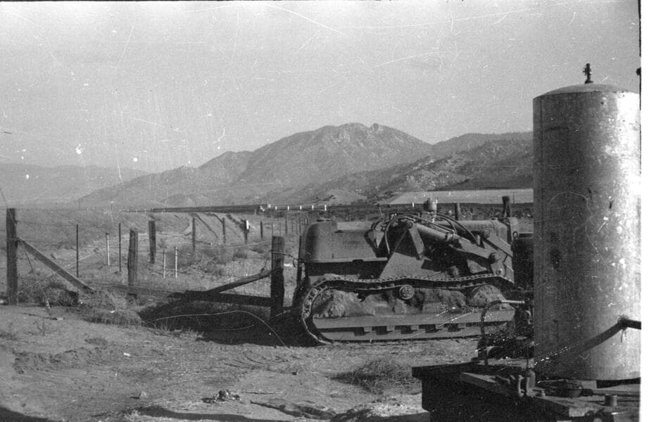 Borel Powerhouse - Borel Canal - Mills Case - Test Wells D-111 inside canal R/W Fence. D-111 - A, B, & C in foreground.