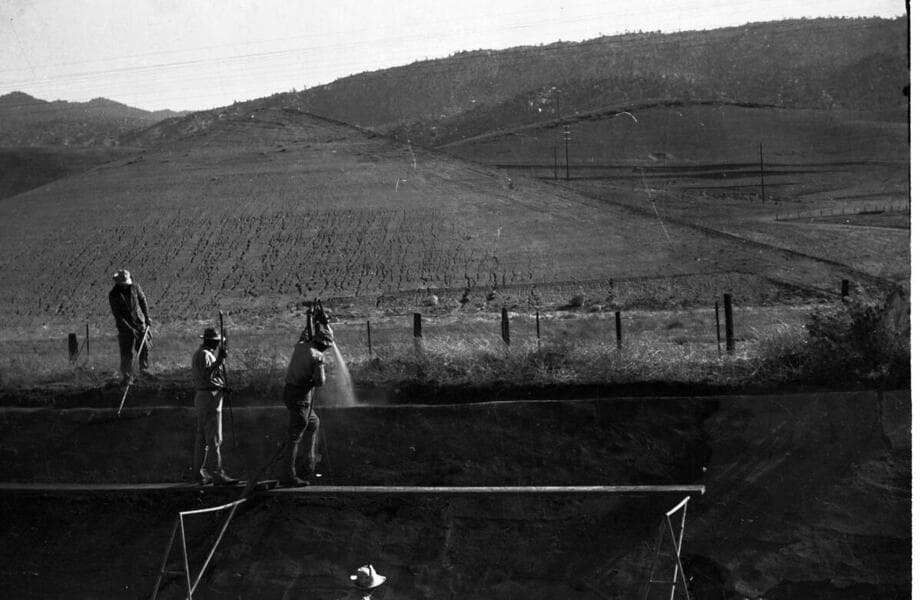 Borel Powerhouse - Borel Canal - Seepage test. View looking South from test site opposite Isabella Calif. Isabella Auxiliary Dam in background.