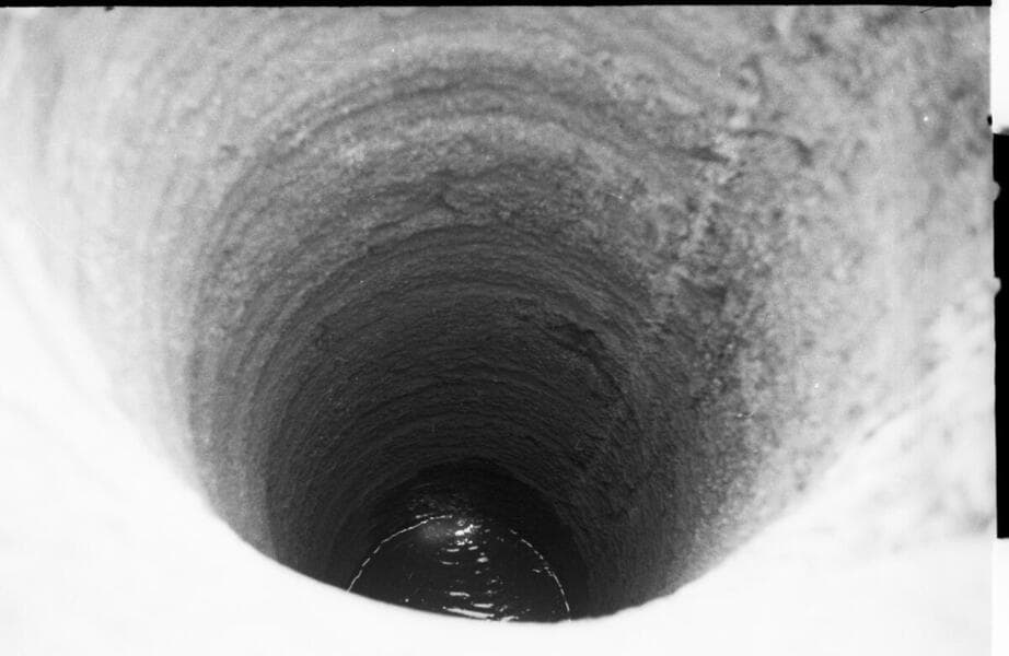 Borel Powerhouse - Borel Canal Seepage Tests - Test hole showing diameters and reference stakes used for measurements.