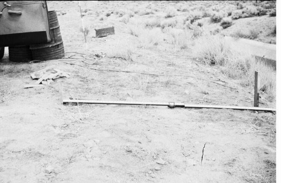Borel Powerhouse - Borel Canal - Seepage test. Test holes for percolation tests showing reference stakes.