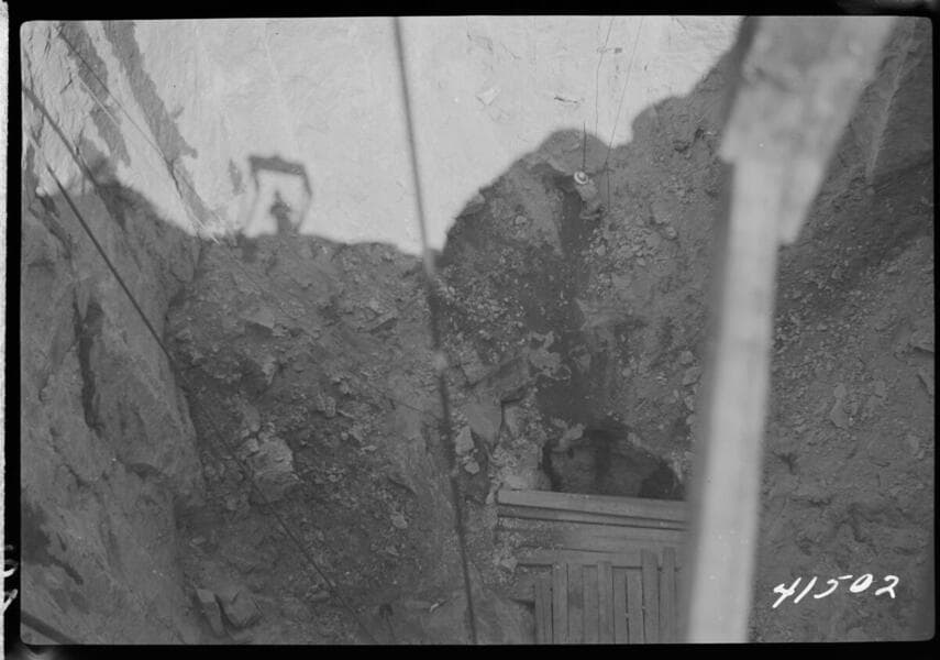 Big Creek Powerhouse #4 - Looking down into surge tank at enlargement work.