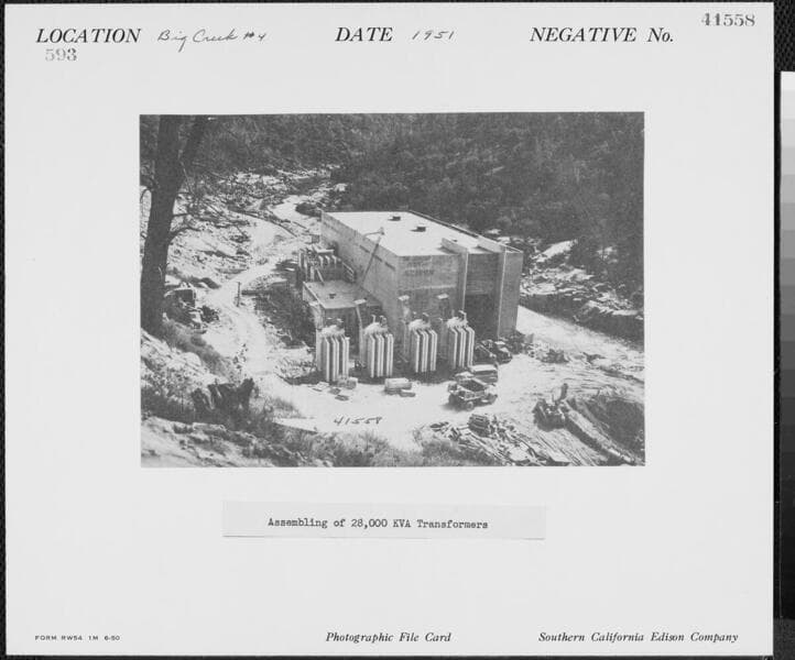 Big Creek Powerhouse #4 - Construction pictures taken by Dam & Tunnel Office. [substation transformers for equipment to excavate Power Tunnels]