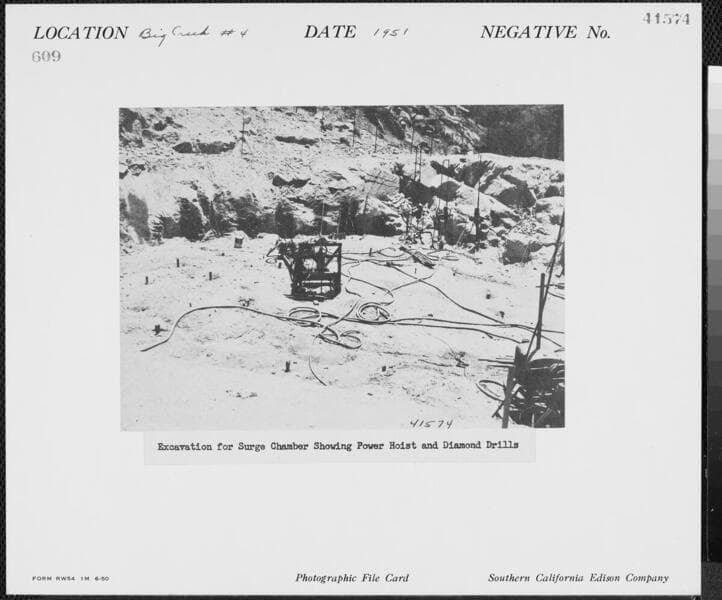 Big Creek Powerhouse #4 - Looking vertically down Surge Chamber to diamond drilling for enlargement