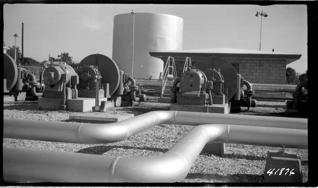 Etiwanda Steam Station - Euclid Fuel Oil Pumping Station - Etiwanda fuel oil line showing Cooper Bessmer pumps.