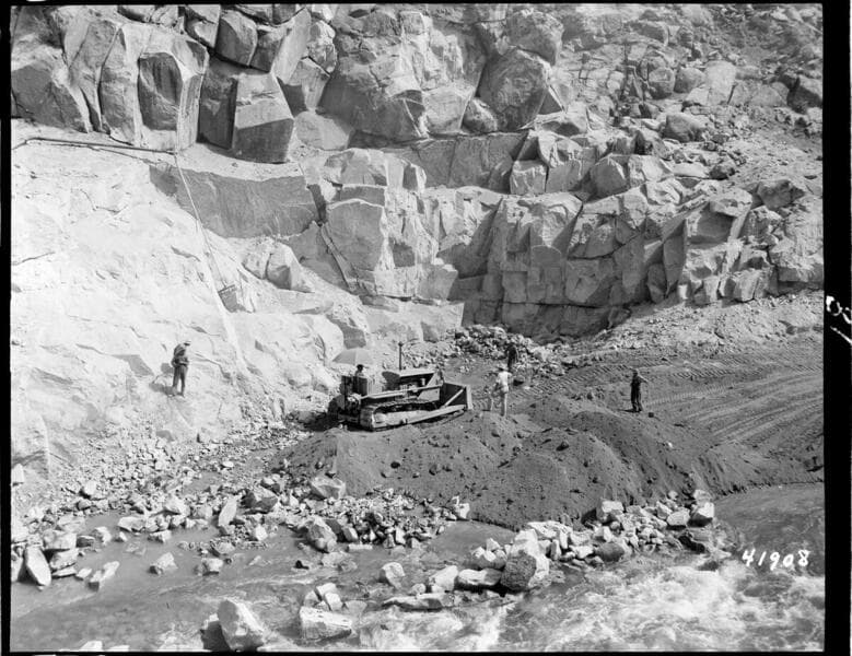Big Creek Powerhouse #4 - Construction pictures taken by Dam & Tunnel Office. [excavating streambed for Willow Creek Crossing trestle foundation.]