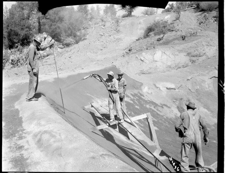 Big Creek Powerhouse #4 - Construction pictures taken by Dam & Tunnel Office. [gunited basin probably made to hold water reserve for Batch Plant]
