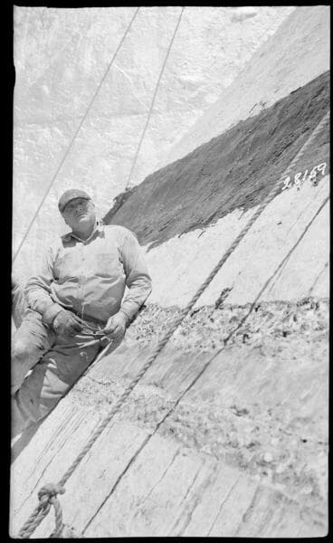 Big Creek, Florence Lake Dam - Day's Work Joint Repair April 1940. Chipping seams on Arch #13.