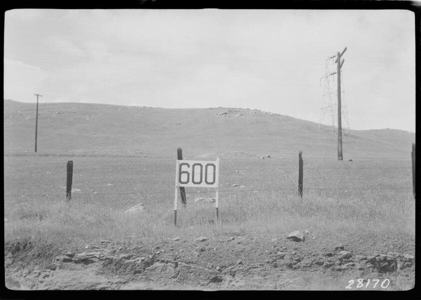 Vincent Transmission line - Terrain, looking southward from near Mile 11 Tower 1. (Construction road shows plainly in left center, and ver faintly in upper left background.
