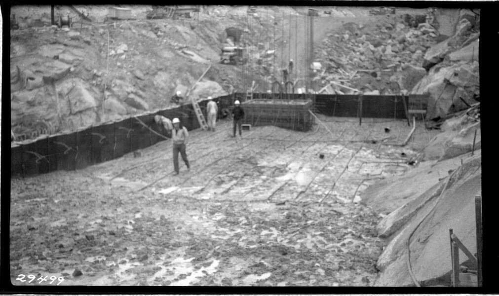 Big Creek Powerhouse #4 - Dam 7 showing fish water turbine draft tube and temporary sluice pipe.