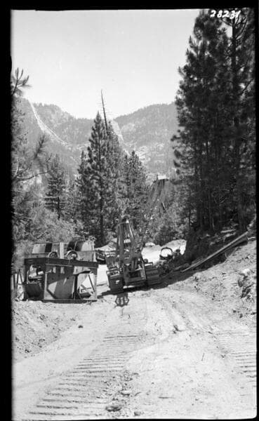 Big Creek Powerhouse 2 & 2a - Constructing road to crushing plant site Tunnel 2, Adit #3.