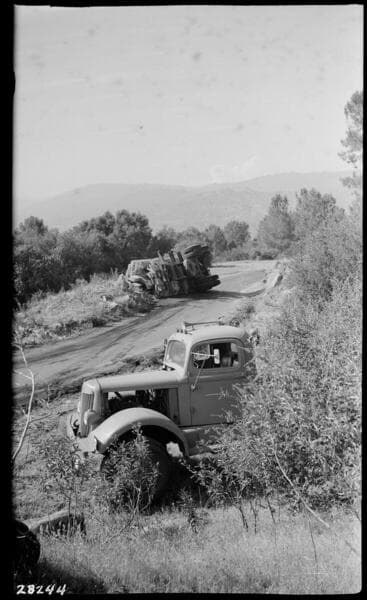 Big Creek Powerhouse #3 - Penstock #3 pipe sections brought in on transcontinental flatcars and unloaded at railroad yard in Auberry. They were then taken to Big Creek on the SJ&E RR.