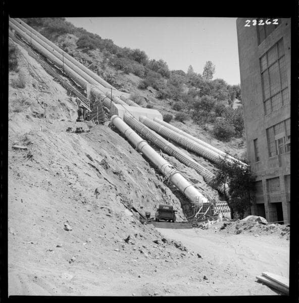 Big Creek Powerhouse #3 - Unit 4 - Penstock construction near vent pipes.