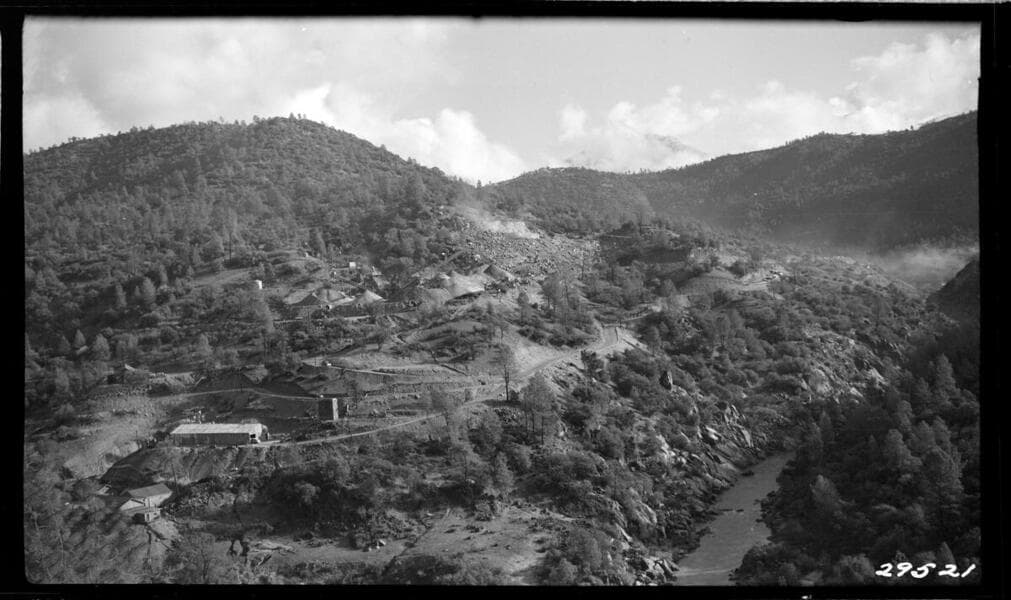 Big Creek Powerhouse #4 - Progress pictures (from Group 1) Willow Creek area showing office, aggregate plant, quarry, and construction plant at tunnel portal.